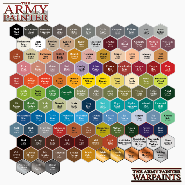 The Warpaints range of high pigment colours can be used for miniatures from any period, any size and any system. Get your army painted fast using the Army Painter System and get more time for gaming!