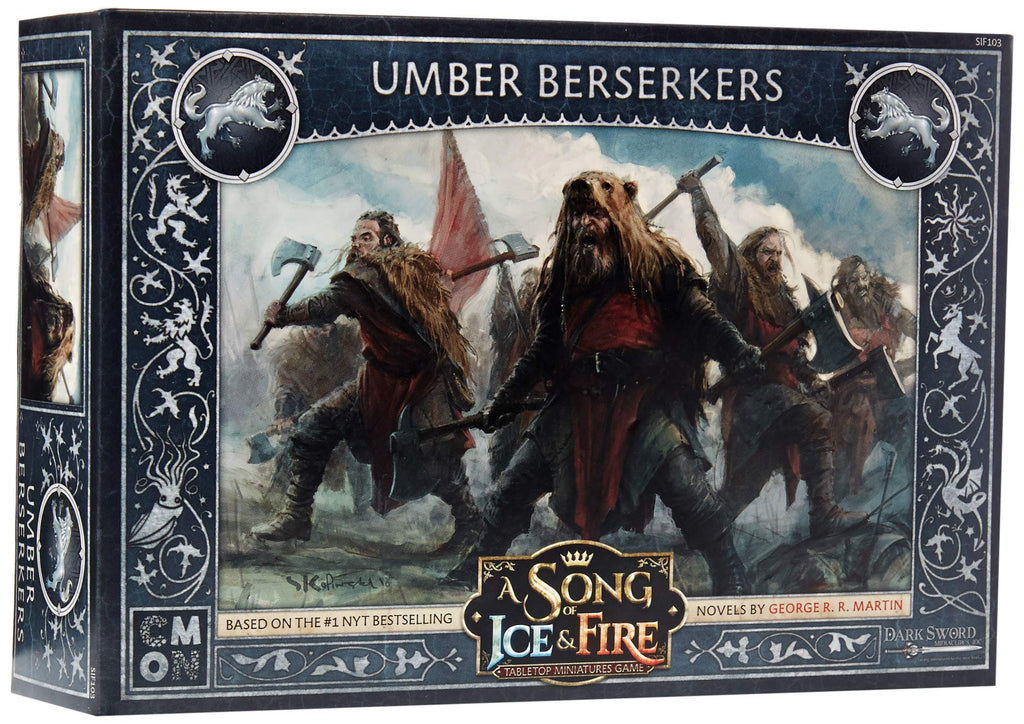 The Umber Berserkers Unit Box for the A Song of Ice and Fire: Tabletop Miniatures Game gives Stark Commanders a new unit to add to their ranks. Melee specialists, they’re one of the few units in the game that gain attack dice as they take casualties. And enemies certainly don’t want to be hit, as the unit’s Sundering ability means Defense Saves are harder to pass. Adding in the Umber Champion only increases their effectiveness in combat.