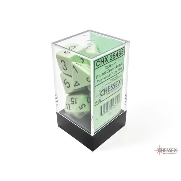 Polyhedral Opaque Pastel Green/ Black Dice Sets