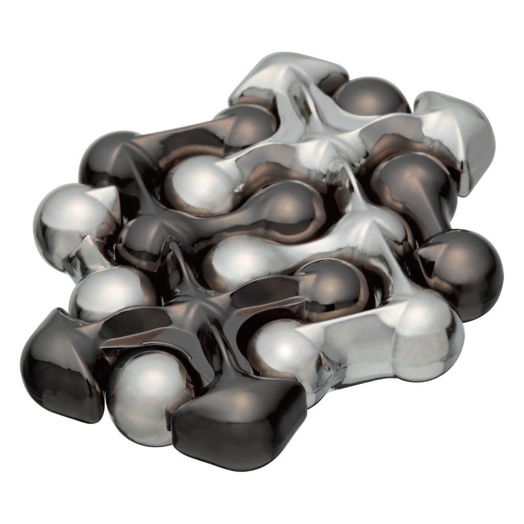 Regularly aligned dots form a line, and the line weaves on the surface. While not being so difficult to solve, its soft shaped beauty will make you want to hold it forever.