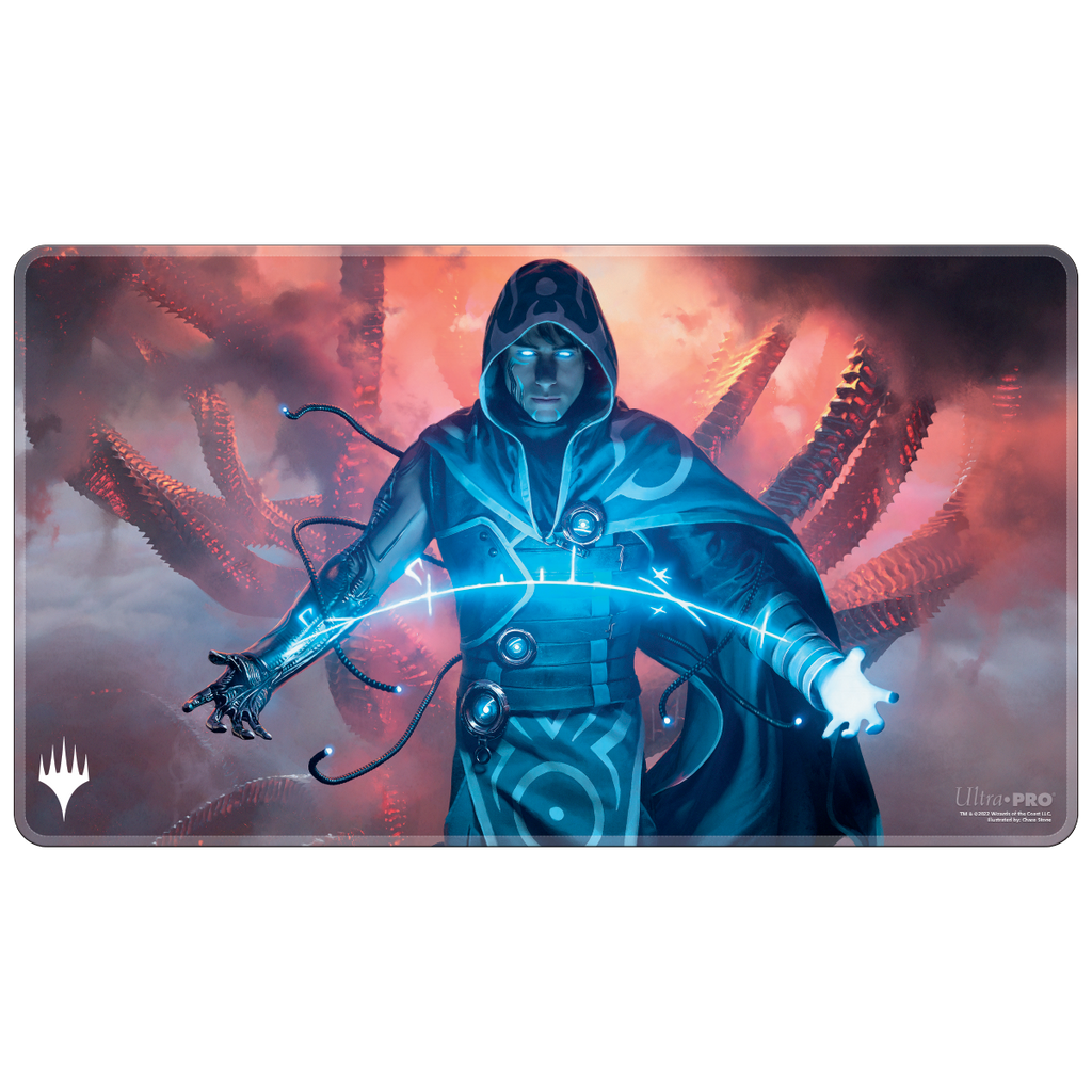 Specialty Playmats feature popular Magic: The Gathering artwork on a specialty printed material. Made with a soft fabric top to reduce damage to cards during play and a non-slip rubber backing to keep the playmat from shifting during use, playmats enhance the gameplay experience. With dimensions of approximately 24 in. x 13.5 in., a playmat also makes an excellent oversize mousepad for home or office.