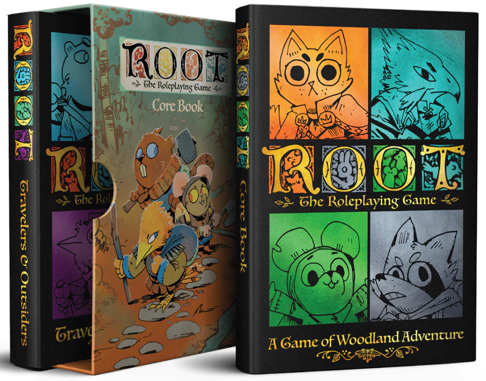 The Deluxe Edition of Root: The RPG contains both the Root RPG Core Book and the first supplement, Travelers and Outsiders, wrapped in a hard slipcase that features the amazing art of original Root artist, Kyle Ferrin. Complete with foil-stamped covers and silk bookmarks, these deluxe versions of both Root: The RPG books contain everything you need to bring tales of the Woodland to your table! your vagabond adventures across the Woodland, you will encounter villains, leaders, innocents, and everything in between with this fully-illustrated, 55-card deck of Woodland denizens, complete with stats, personality traits, game-ready requests for the vagabonds, and new art by Kyle Ferrin!