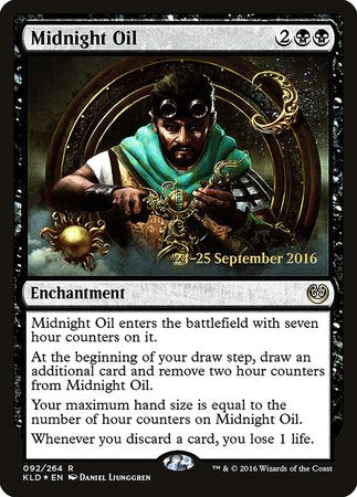 At the beginning of your draw step, draw an additional card and remove two hour counters from Midnight Oil.
