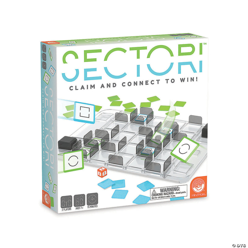 This modern board game is easy to learn but takes time to master. Based off the dots-and-squares game, children and parents alike will enjoy facing off. On each turn, roll a die and place your walls. Build and claim 4-sided “sectors” by placing the last wall to complete a 1x1 square. Try to block your opponent from claiming sectors or get lucky and draw special tiles that give you extra actions. Claim 5 sectors in a row and you’ve won Sectori! It’s always an exciting brain challenge – whether it’s your 4th or 40th round!• Claim five sectors in a row to win this engaging game of strategic planning• Kids develop big-picture and logical thinking, strategy and creativity• Perfect for kids and adults who enjoy 3D puzzles, logic games and mazes• Modern style – a perfect coffee-table game• For 2 players• Includes 60 walls, 36 action tiles, 1 game board, die and instructions.