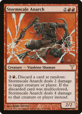 {2}{R}, Discard a card at random: Stormscale Anarch deals 2 damage to any target. If the discarded card was multicolored, Stormscale Anarch deals 4 damage instead.